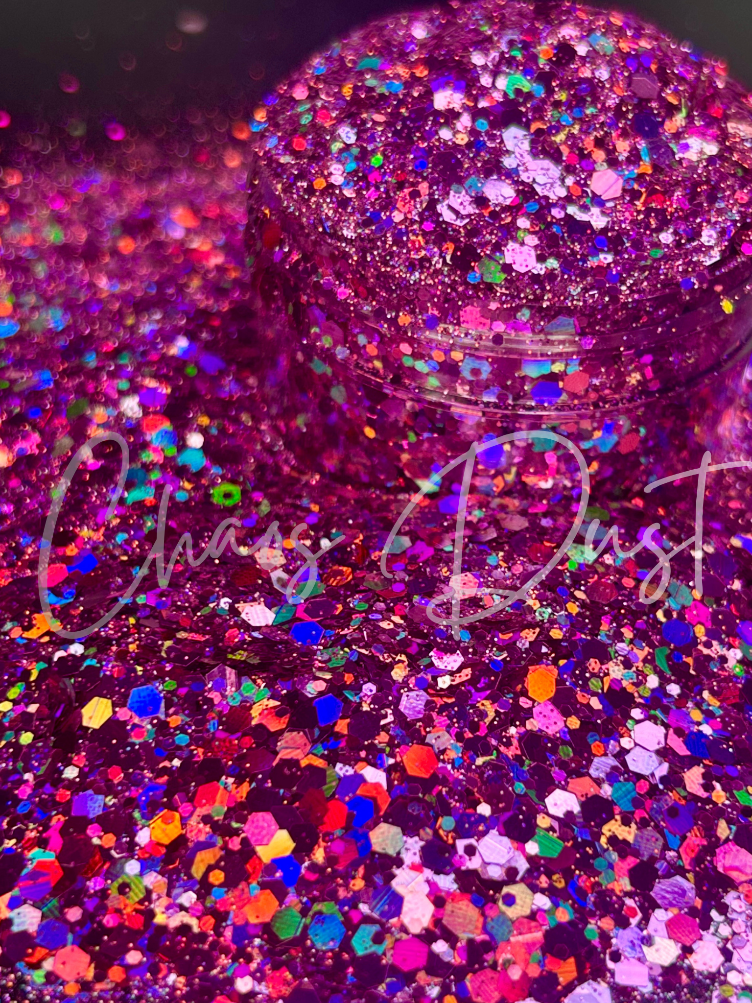 An explosive blend of hot fuchsia, deep violet, and neon-bright rainbow holo that refuses to sit still. Every scoop is a full-spectrum riot—electric blues, acid greens, fiery oranges, and molten pinks flashing through a rich fuchsia base. This glitter is loud, wild, and unapologetically extra. It doesn’t just sparkle—it erupts.