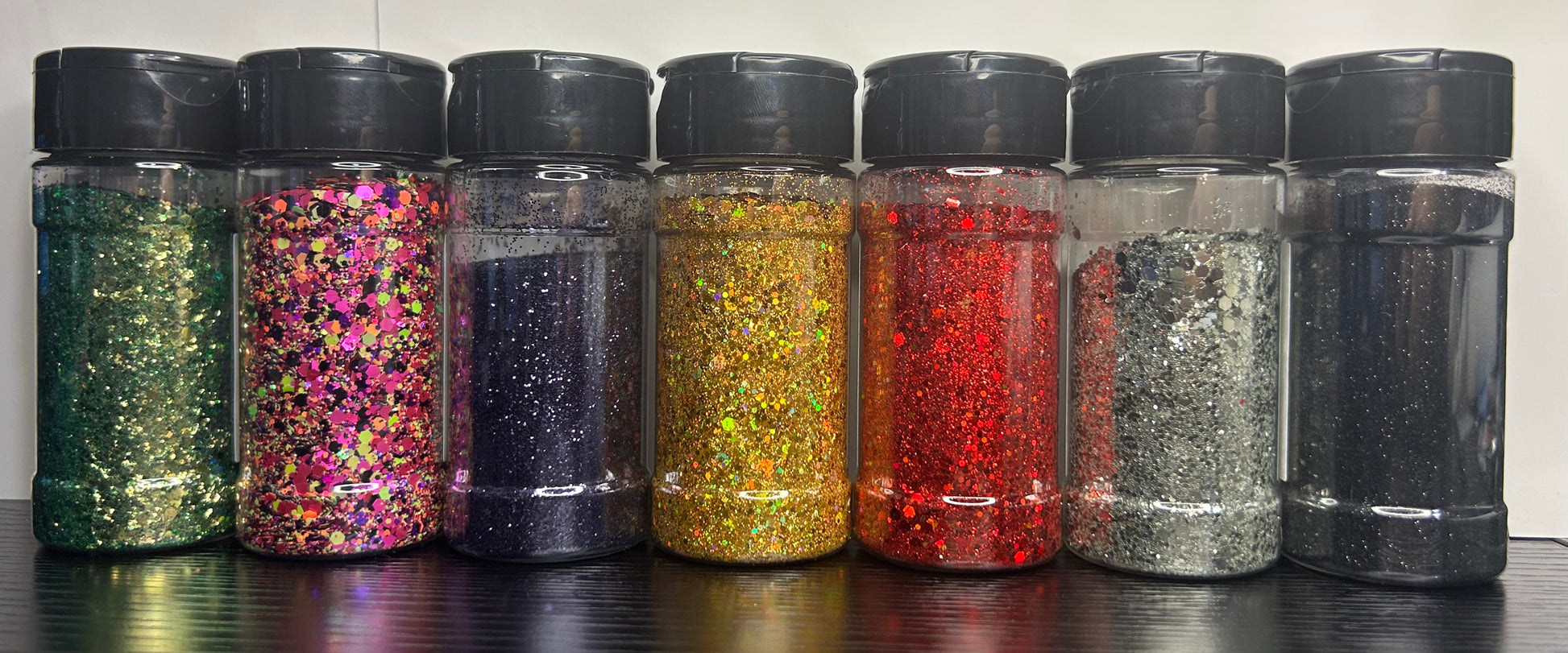 A curated collection of seven hauntingly beautiful glitters designed to shimmer under candlelight and chaos alike. Each shade captures the mystique of autumn nights, flickering spells, and opulent mischief.